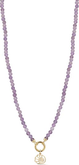 Semiprecious stone beads bring a pop of color to this dainty necklace suspending a removable shell charm.