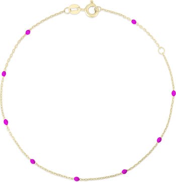 Dainty beads add a pop of color to this 14k-gold cable-chain bracelet.