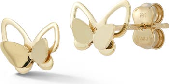 Petite butterflies bring whimsical flair to your lobes in these stud earrings crafted from gleaming 14-karat gold.