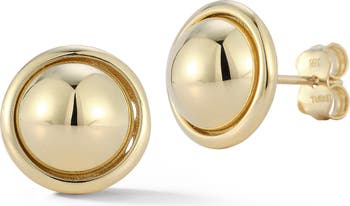 Polished buttons bring an elegant flourish to your lobes in these stud earrings crafted from gleaming 14-karat gold.