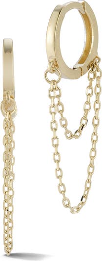 Huggie-hoop earrings crafted from 14-karat gold suspend chain drops for added edginess.