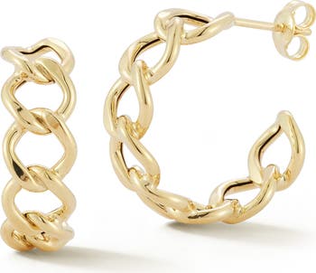 Chain link huggie hoops are made from 14-karat gold and textured to perfection, bringing eye-catching shine ot your everyday look.