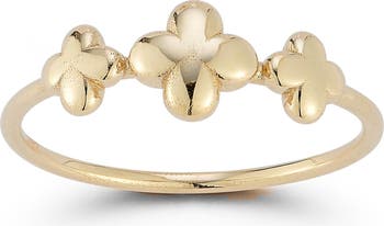 A trio of clovers gleams from atop this understated yet chic ring crafted from shiny 14-karat gold.