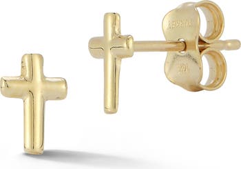 Petite crosses bring charming flair to your lobes in these stud earrings crafted from gleaming 14-karat gold.