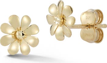 Petite flowers bring whimsical flair to your lobes in these stud earrings crafted from gleaming 14-karat gold.