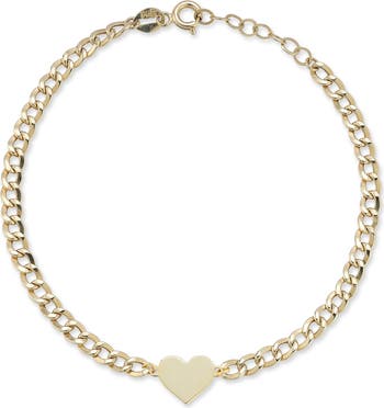 A dainty heart charm catches light on this 14k-gold curb-chain bracelet.