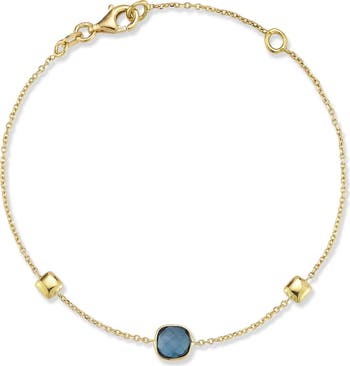 This dainty chain bracelet is shimmering with geometric stations and centered with a beautiful London-blue topaz.