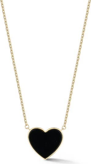 Moody onyx stone brings an edgy feel to this heart-pendant necklace crafted from gleaming 14-karat yellow gold.