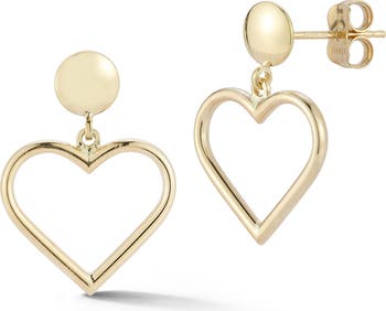 An open-heart silhouette brings contemporary appeal to these drop earrings crafted from gleaming 14-karat gold.