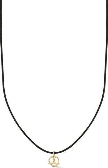 A 14-karat-gold pendant in the shape of a soft pretzel is suspended from a cord necklace crafted in Italy to elevate your look.