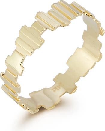 A contemporary ribbed design catches light at different angles on this subtle ribbed design finessed in warm 14-karat gold.