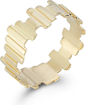 A fragmented ribbed design creates a uniquely modern look on this band ring crafted from gleaming 14-karat gold.