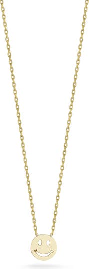 Spread a gleam of joy wherever you go in this smiley face pendant necklace crafted in Italy from 14-karat gold.