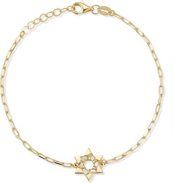 This dainty 14-karat-gold bracelet featuring a diamond-adorned Star of David charm brings bright shine to your wrist stack.