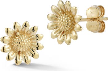 Elevate your ear stack with these 14k-gold sunflower stud earrings.