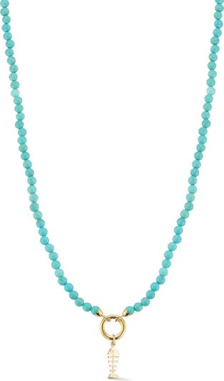 Bring a splash of seaside charm to any sun-ready look with this turquoise beaded necklace finished with a 14k-gold fishbone pendant.