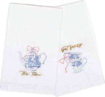 Add a touch of elegance to your space with these cotton towels featuring a delightful tea-embroidered design that works beautifully in your kitchen or bar.