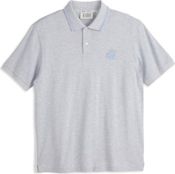 Enjoy the comfort of a cotton piqué polo constructed with a ribbed striped collar and embroidered logo for polished style.