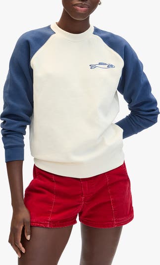 This cotton sweatshirt features a classic crewneck and long raglan sleeves, finished with a playful embroidered sardine detail for a subtle, standout touch.