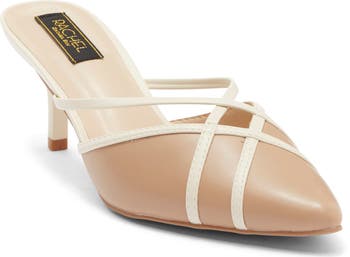 Crisscrossing straps bring modern flair to this pointed-toe mule lifted by a modest heel for polished style.