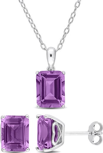 Achieve instant glam with this set that features an emerald-cut amethyst pendant necklace and matching stud earrings to complete the look.