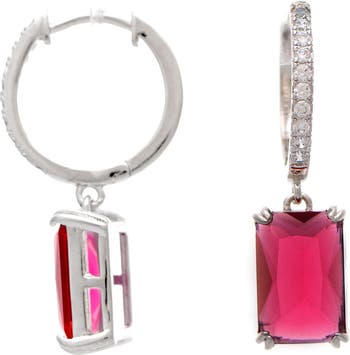 Bring a pop of color to your lobes with these endless pavé huggies suspending emerald-shaped cubic zirconia stones.