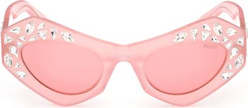 Shield your eyes from the sun in statement-making sparkle with these cat-eye sunnies adorned in faceted stones.