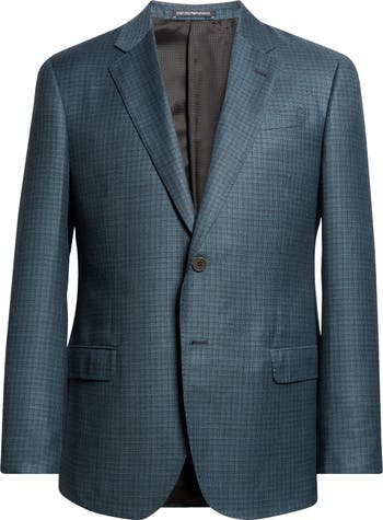 Egyptian wool patterned in a check of shadowy greens and greys distinguishes a sport coat that's lightly padded in the shoulders and fitted in the waist for a smartly refined silhouette. Styled with traditional notched lapels, it brings an elegant finish to any semiformal look.