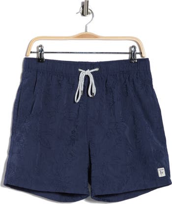 Embroidered tropical blooms amplify the warm-weather vibe of swim shorts cut with a touch of stretch for surf-to-sand comfort.