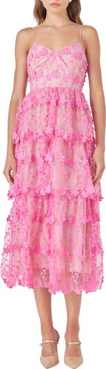 Floral Embroidered Tiered Lace Midi Dress