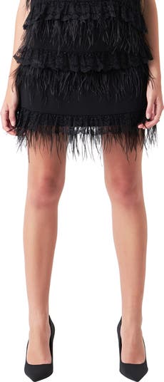 Feathery, lacy details add a delightful textural twist to a miniskirt that's ready to elevate any look.