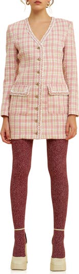 Bring preppy polish to your ensemble in this plaid mini cut from tailored tweed and trimmed with ornate braiding along the pocket flaps and placket.