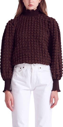 This blousy textured top is framed by puff sleeves and finished with smocked trim.
