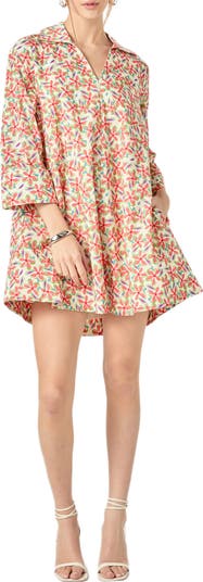 Bring flower power to your day with this swingy trapeze dress framed by a retro johnny collar and handy side pockets.