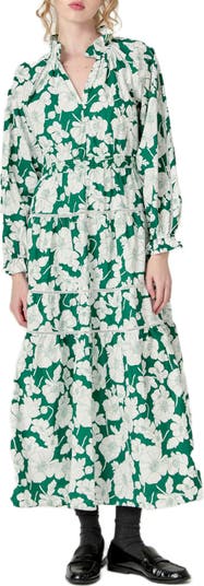 Floral Long Sleeve Cotton Tiered Maxi Dress