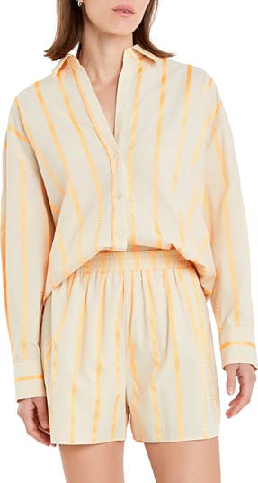 Oversize Taped Stripe Long Sleeve Button-Up Shirt