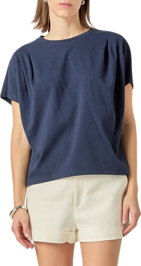 Fall for the soft drape of this cotton T-shirt designed with deep shoulder pleats.