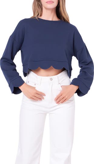 Scalloped trim sweetens this soft cotton top cut in a cool cropped silhouette.