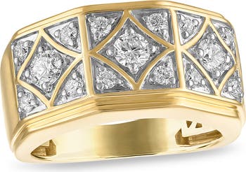 Refresh your jewelry collection with this polished ring inset with brilliant white diamonds in a geometric pattern.