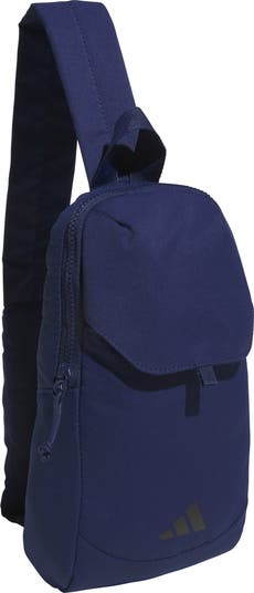 A wipeable, easy-to-clean sling bag crafted from recycled polyester features multiple zippered pockets and roomy storage space.