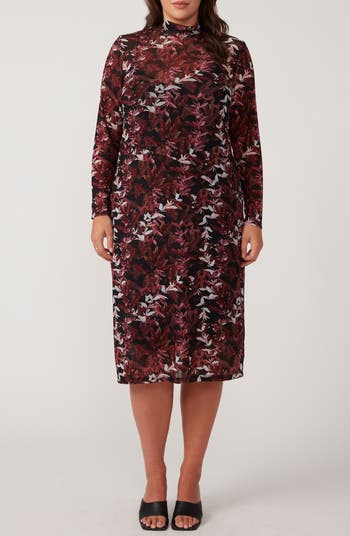 Moody blooms romance this gauzy mesh midi that makes an easy transition from desk to date night.