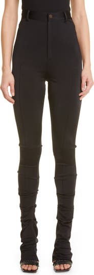 Combining the comfort of leggings with the structure of jeans, these pants begin with a tailored high waist and end with extralong, gathered hems. Raised center seams, paired with the to-the-floor length, add a legs-for-days effect to this Lookbook-featured style.