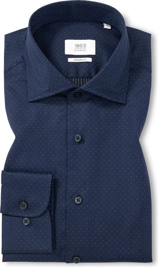 Add a refined touch to your look with this dobby-dot button-front shirt tailored in a modern fit from breathable cotton for a breathable feel.
