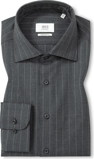 Add a refined touch to your look with this chalk-stripe button-front shirt tailored in a modern fit from fine merino wool for a warm feel.