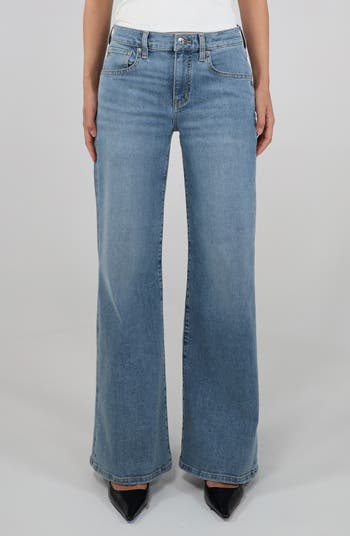 Cut with a lower rise and a softly fitted hip, these dramatic wide-legged jeans create an effortlessly laid-back style for any look.