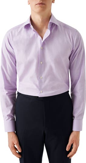 Slim Fit Microcheck Cotton Dress Shirt