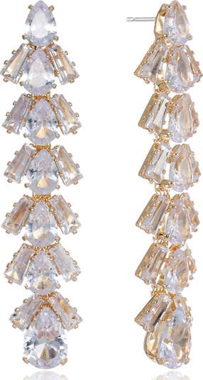 Bright-white cubic zirconia lend bright shimmer and shine to slender drop earrings that instantly elevate your stack.