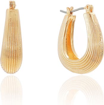 Ribbed texture and a chunky silhouette add contemporary shine to these modern hoop earrings.