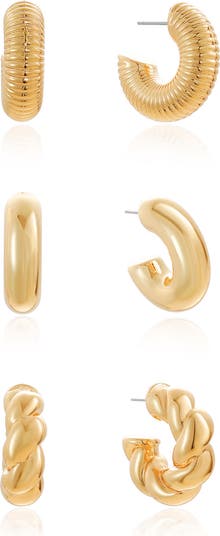 - Set includes three pairs of earrings
