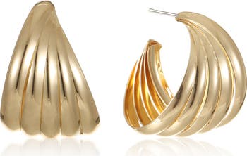 Pillowy ridges texture these gleaming wedge hoop earrings that bring instant polish to your looks.